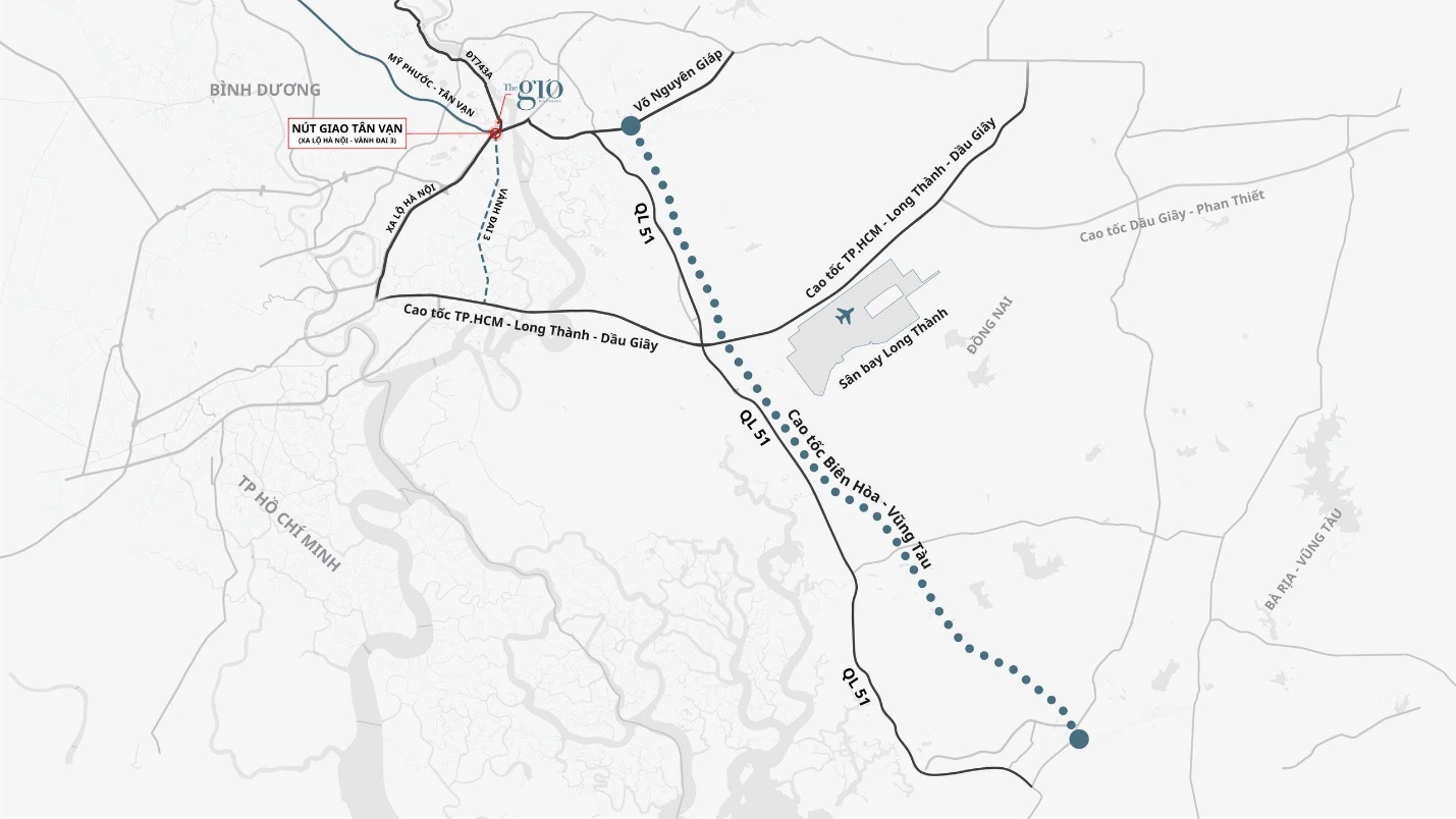 Phát triển bởi An Gia, The Gió Riverside là dự án hiếm hoi liền kề nút giao Tân Vạn, trục Xa lộ Hà Nội và tuyến Vành Đai 3. Từ dự án, cư dân chỉ mất khoảng 10 phút đến cao tốc Biên Hòa - Vũng Tàu, 20 phút kết nối sân bay quốc tế Long Thành, 70 phút đến TP. Vũng Tàu.