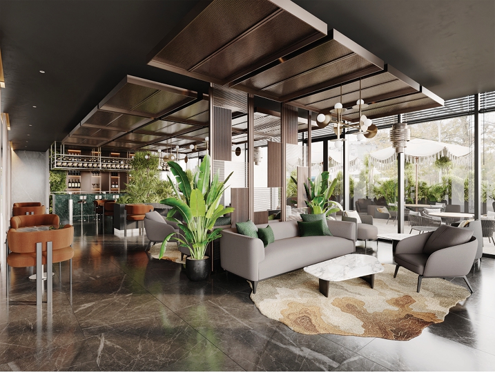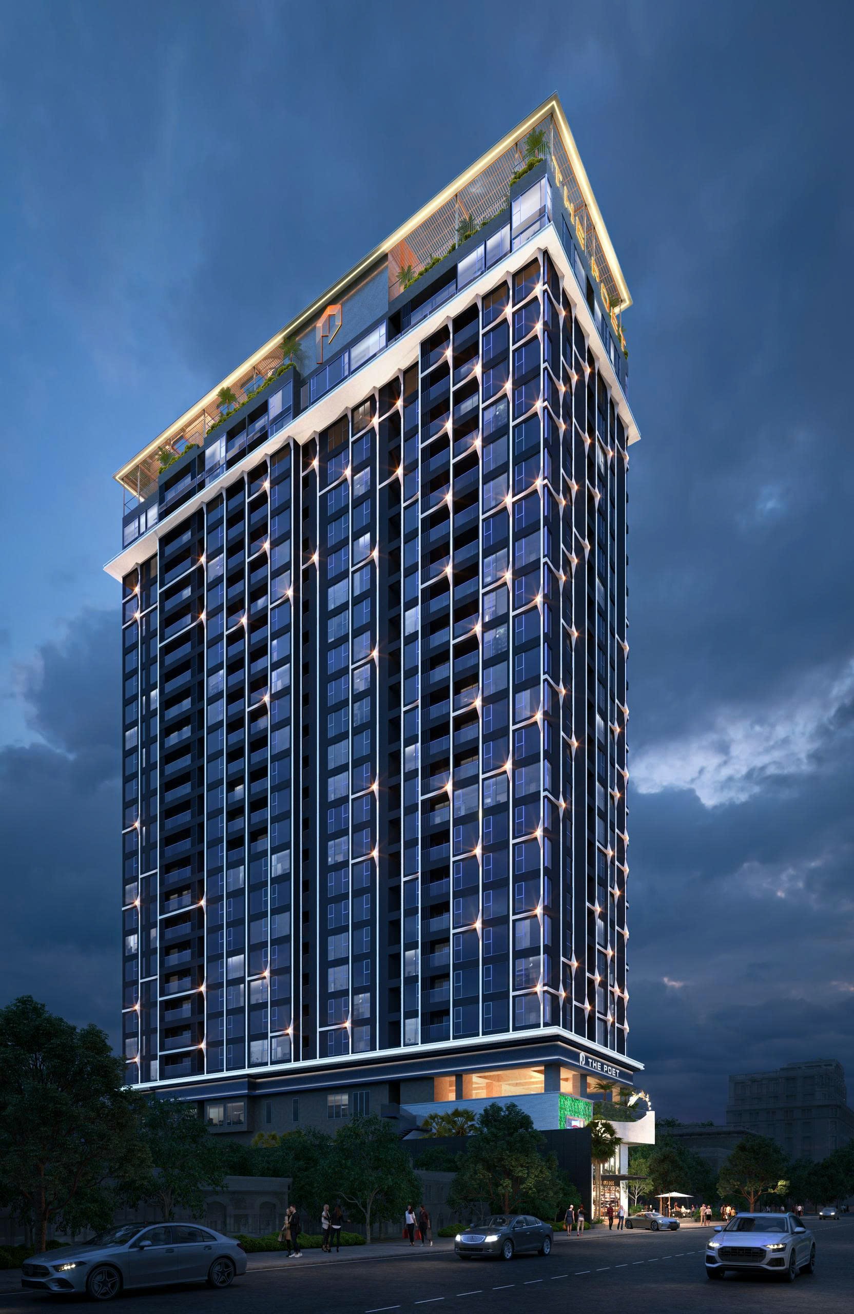 Với quy mô 2 tầng hầm diện tích 3.961,4m², 3 tầng là trung tâm thương mại quy tụ các thương hiệu nổi tiếng toàn cầu, thoả sức mua sắm; hệ thống siêu thị tiện ích, kèm theo đó là khu nhà hàng ăn uống do các đầu bếp danh tiếng được tuyển chọn. Tại The Poet còn được thiết kế trung tâm hội nghị, tiệc cưới sang trọng và tinh tế. Và đương nhiên không thể thiếu khu vui chơi giải trí, Sky Bar có tầm view 360 độ toàn thành phố; Trường mầm non, khu vui chơi cho trẻ em, hồ bơi và phòng tập gym…